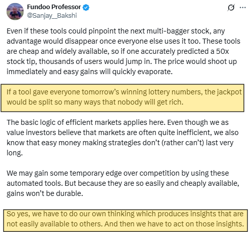 Now, coming to “AI and Investing,” that is gaining a lot of ground over the last few months, my observations are similar.