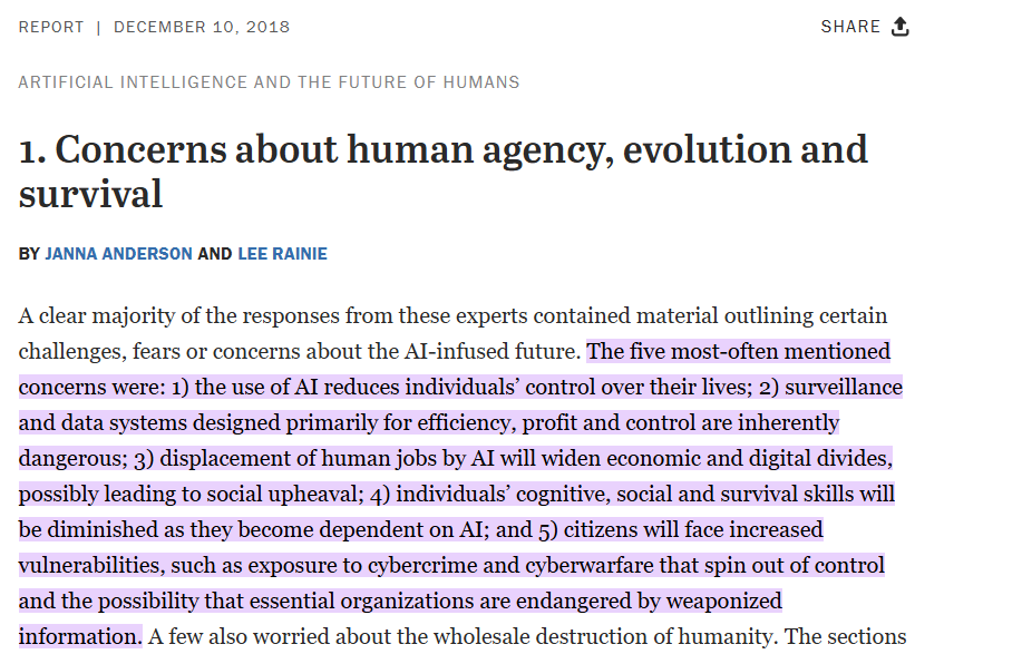 Source: https://www.pewresearch.org/internet/2018/12/10/concerns-about-human-agency-evolution-and-survival