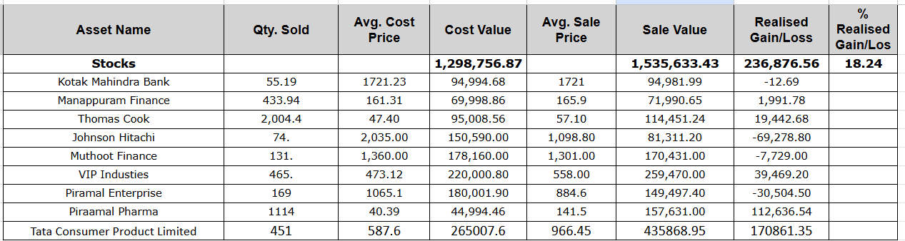 So, I outperformed NIFTY50, but underperformed Midcap and Smallcap indices. And I am not going to give you any excuse as to why I underperformed the small and the midcap indices. This is the plain truth. I observe it and accept it.