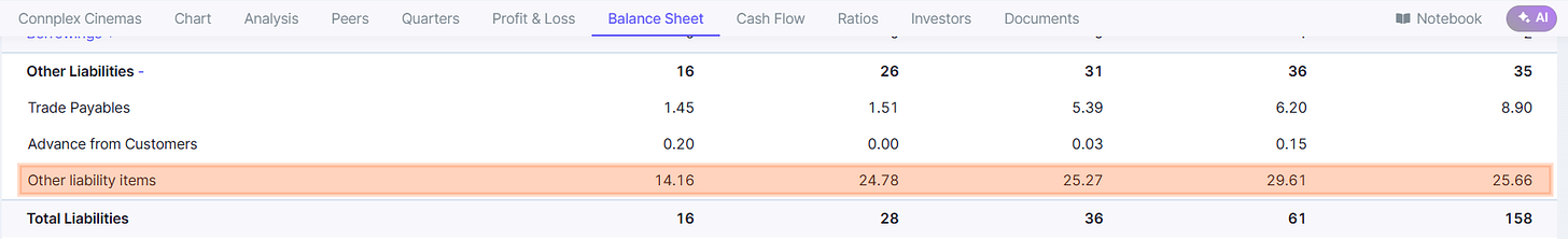 The contrast is clear: Connplex runs on an asset-light, debt-free model, while PVR INOX carries the weight of both. But the story doesn’t end there. A closer look at Connplex’s balance sheet reveals that a significant portion of its assets and liabilities sit under the “other” category, worth examining more closely to understand what’s really at play.