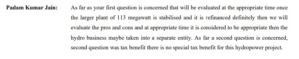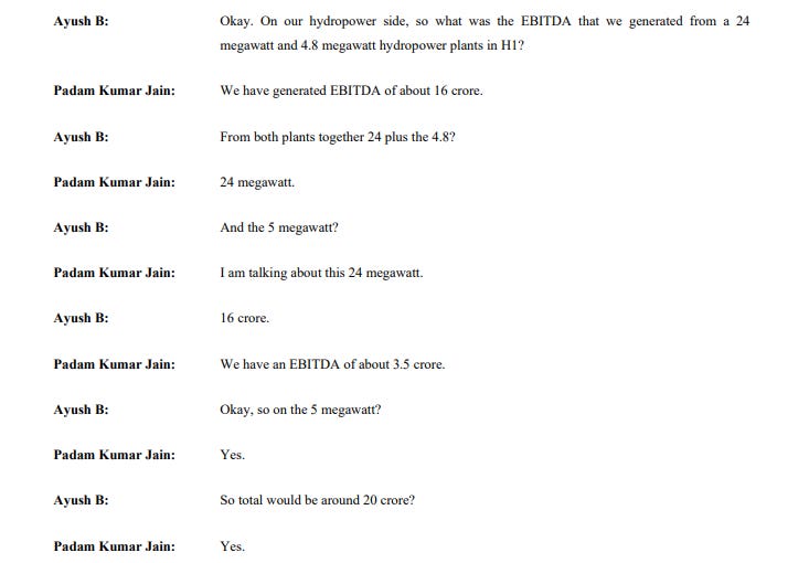 What really stood out in this phase was the gradual emergence of a second growth engine, hydropower. The 24-megawatt Chhattisgarh hydro project was already contributing steady cash flows, generating around ₹16 crore EBITDA in six months, while another 5-megawatt plant added another ₹3.5 crore