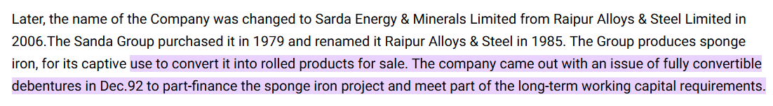 In 2006, Raipur Alloys & Steel became Sarda Energy & Minerals Ltd. In 2007–08, SEML merged Chhattisgarh Electricity Company and Raipur Gases into itself. Everything was brought under one roof, both in structure and spirit.