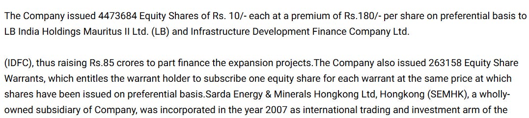 Now, expansion needed money, and SEML was ready to raise it. In 2007, the company issued 44.7 lakh shares at a premium of ₹180 per share, bringing in around ₹85 crore from IDFC and Lehman Brothers’ Mauritius arm. It also issued warrants for possible future investment. The funds helped build the pellet plant and add new capacity.