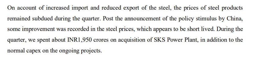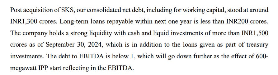 Of course, there were clouds too. The SKS acquisition faced ongoing appeals at the NCLAT and the Supreme Court, with competing bidders challenging the process. The management acknowledged the litigation but remained confident.