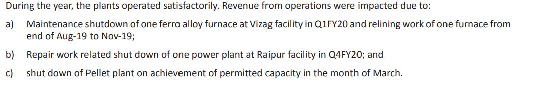 Meanwhile, at the steel complex, SEML kept refining the smaller details, debottlenecking the pellet plant, building inventory to ride price cycles, and expanding ferroalloy operations. By late 2019, both furnaces at Sarda Metals & Alloys (Vizag) were running again after relining, operating at full capacity.
